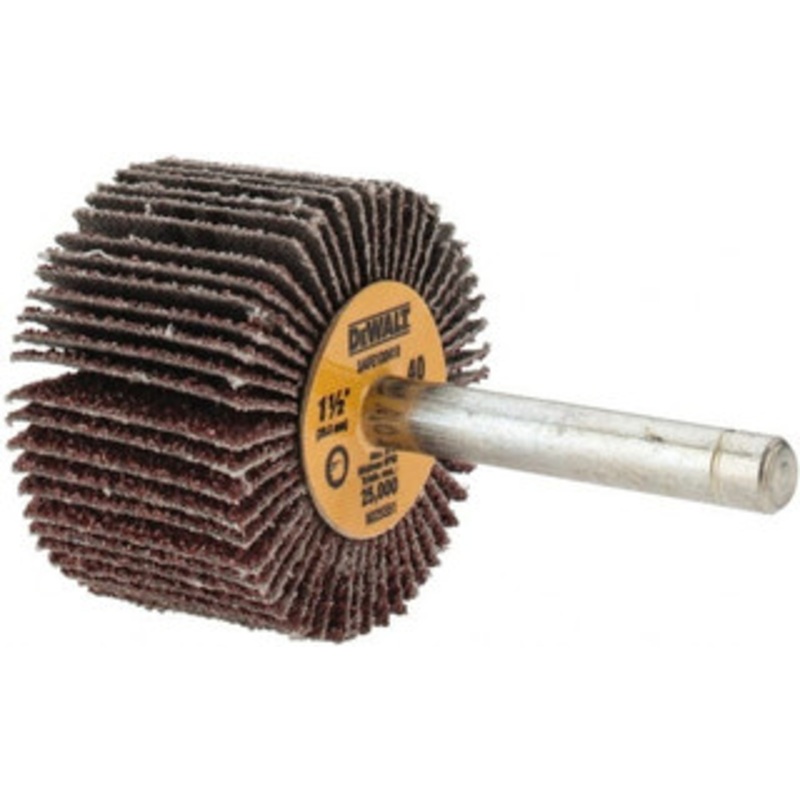 DeWALT 1-1/2″ Diam x 1″ Face Width, Coarse Aluminum Oxide Coated Mounted Flap Wheel 1/4″ Shank Mount, 40 Grit, Cloth Backing, 25,000 Max RPM