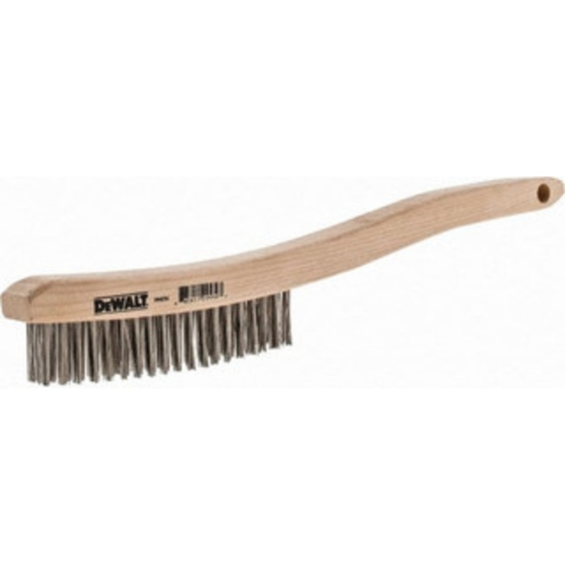 DeWALT 19 Rows x 3 Columns Stainless Steel Scratch Brush 13-11/16″ OAL, 1-1/8″ Trim Length, Wood Curved Handle