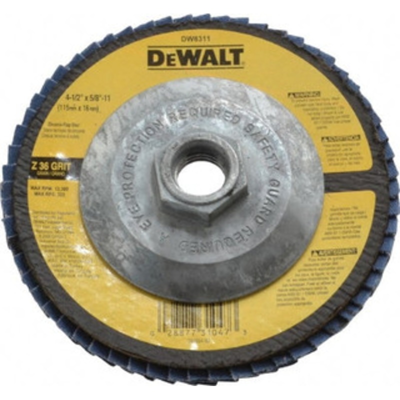 DeWALT 4-1/2″ 36 Grit 5/8-11 Center Hole Type 29 Zirconia Alumina Flap Disc Very Coarse Grade, Coated, Arbor Attachment, Fiberglass Backing, 13,300 RPM