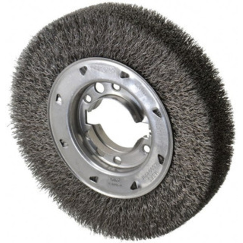 Osborn 8″ OD, 2″ Arbor Hole, Crimped Steel Wheel Brush 1-1/2″ Face Width, 1-1/2″ Trim Length, 0.0118″ Filament Diam, 4,500 RPM