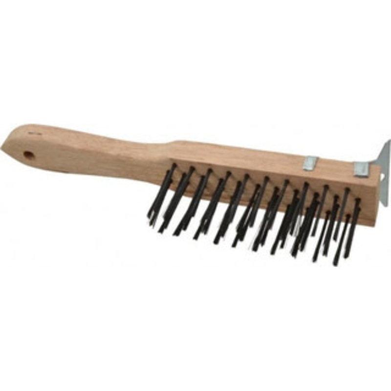 Weiler Abrasives 4 Rows x 11 Columns Steel Scratch Brush 5″ Brush Length, 11-1/2″ OAL, 1-5/8″ Trim Length, Wood Straight Handle